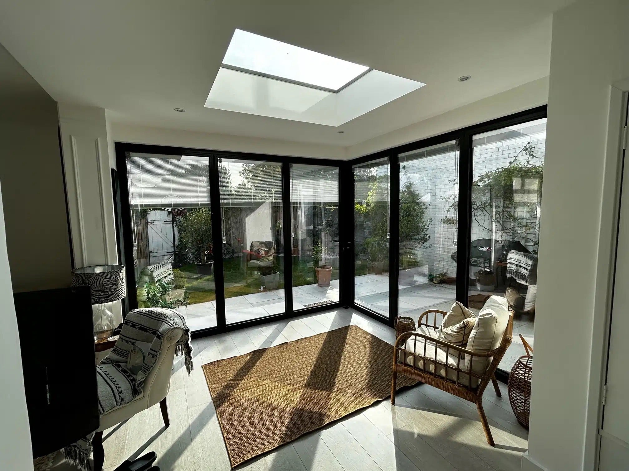 What makes Slide & Fold different is our approach to rooflight design and installation. Our online configurator allows you to specify exact dimensions and requirements, while our technical team ensures compatibility with your roof structure. We manufacture every rooflight in our Coventry facility and offer truly bespoke solutions with options for fixed or opening designs, various glazing specifications, and even automated operation.